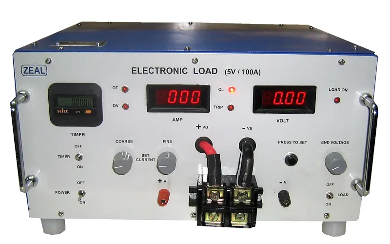 Controls | Load adjustment by coarse & fine potentiometers. Load ON/OFF, Time Totalizer ON/OFF by toggle switch. Setting of End Voltage by using potentiometer &press to set switch on volt meter. |